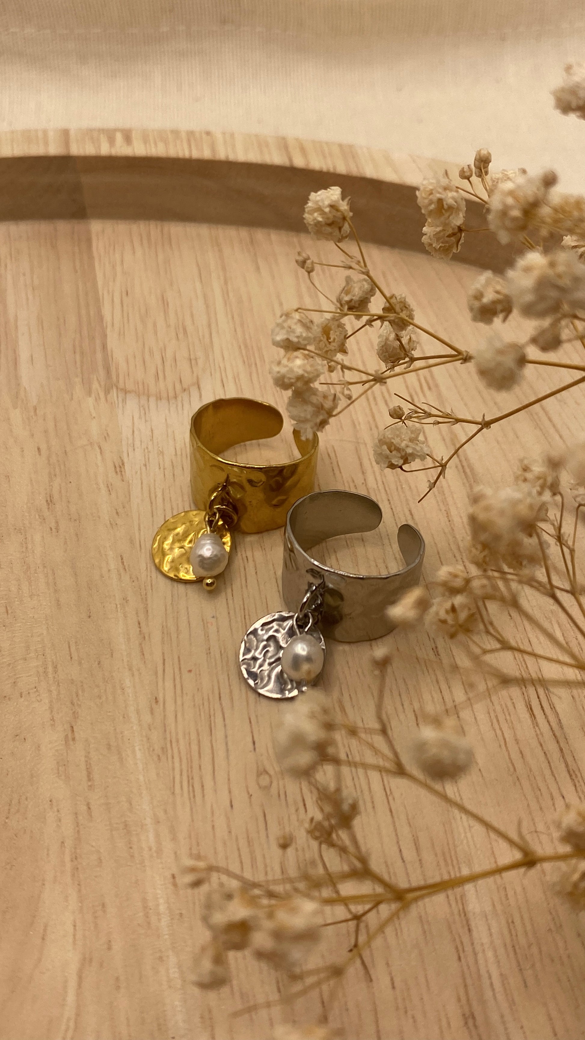 Bague breloque martelée, réglable et en acier inoxydable doré