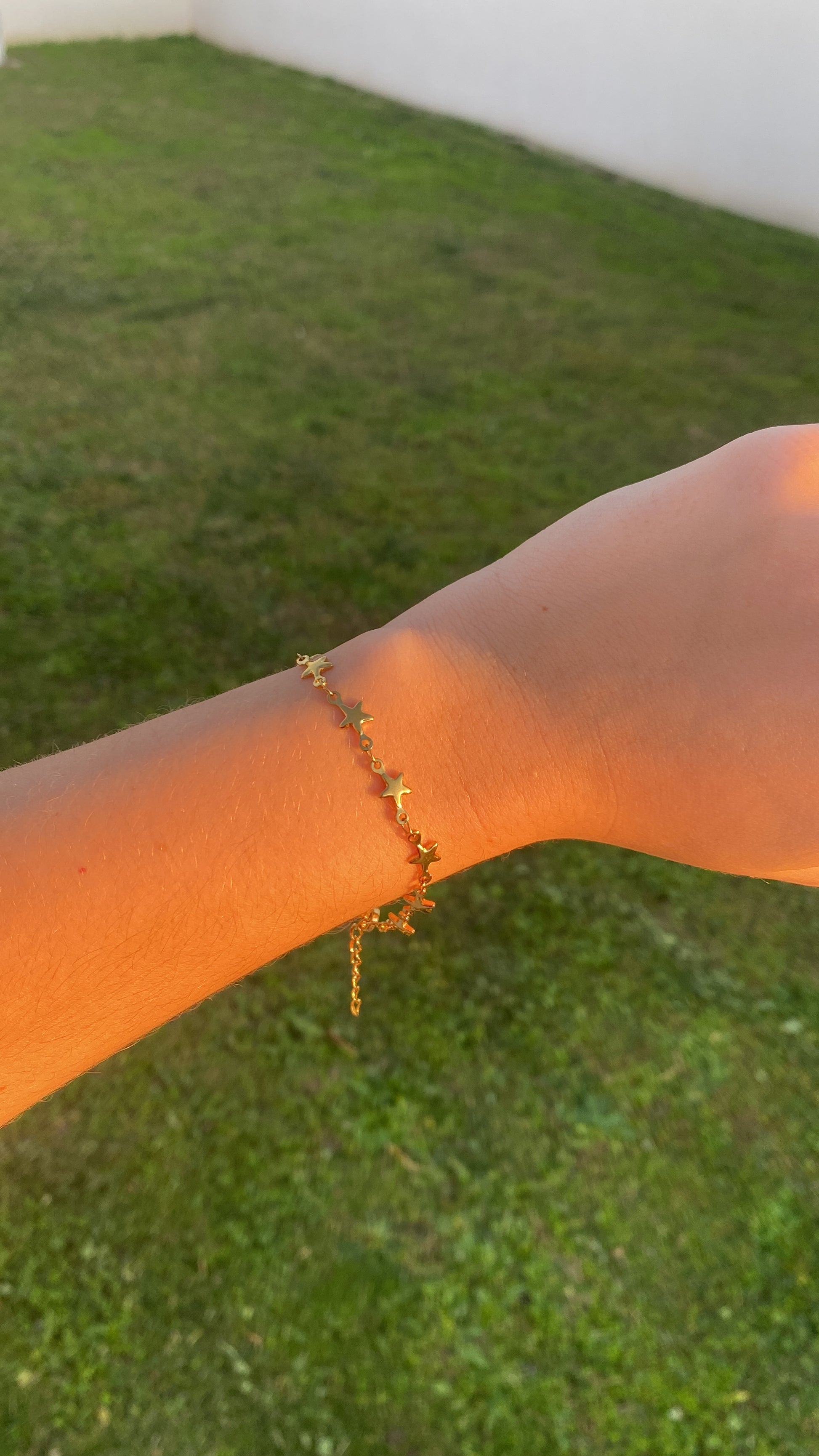 Bracelet d’étoiles doré, en acier inoxydable, avec chaîne d’extension.