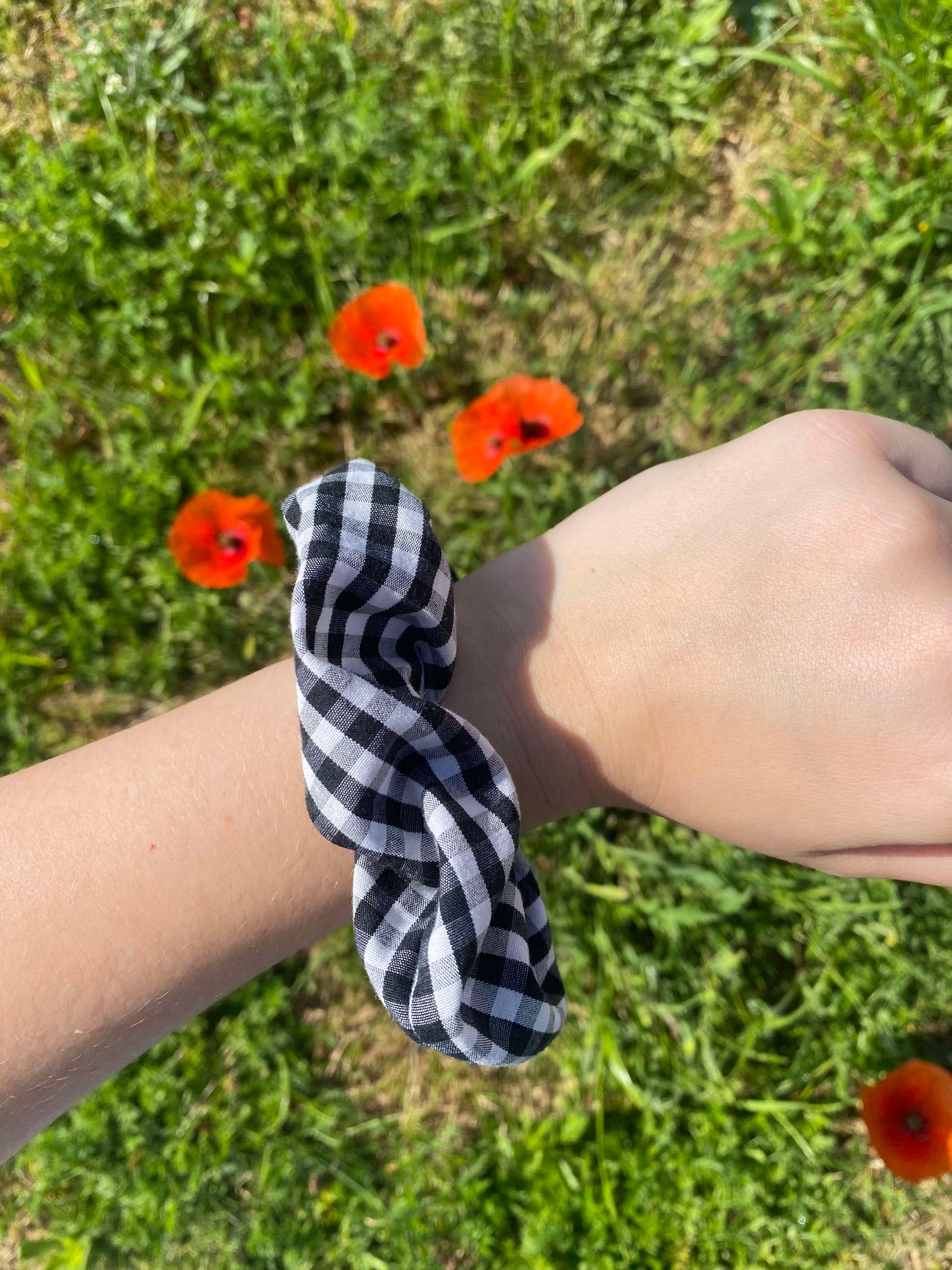 Chouchou réalisé à la main, à carreaux noir et blanc.