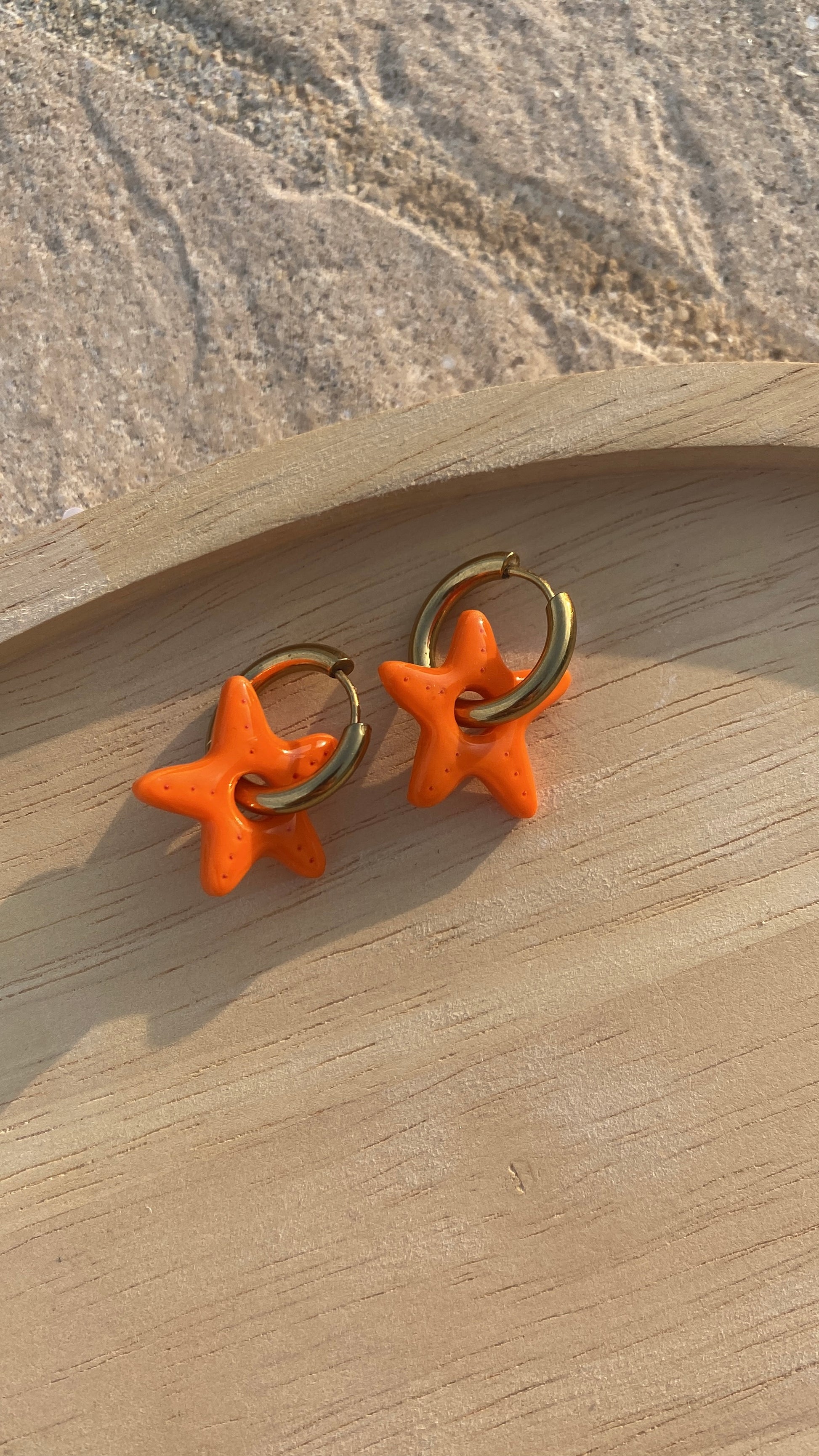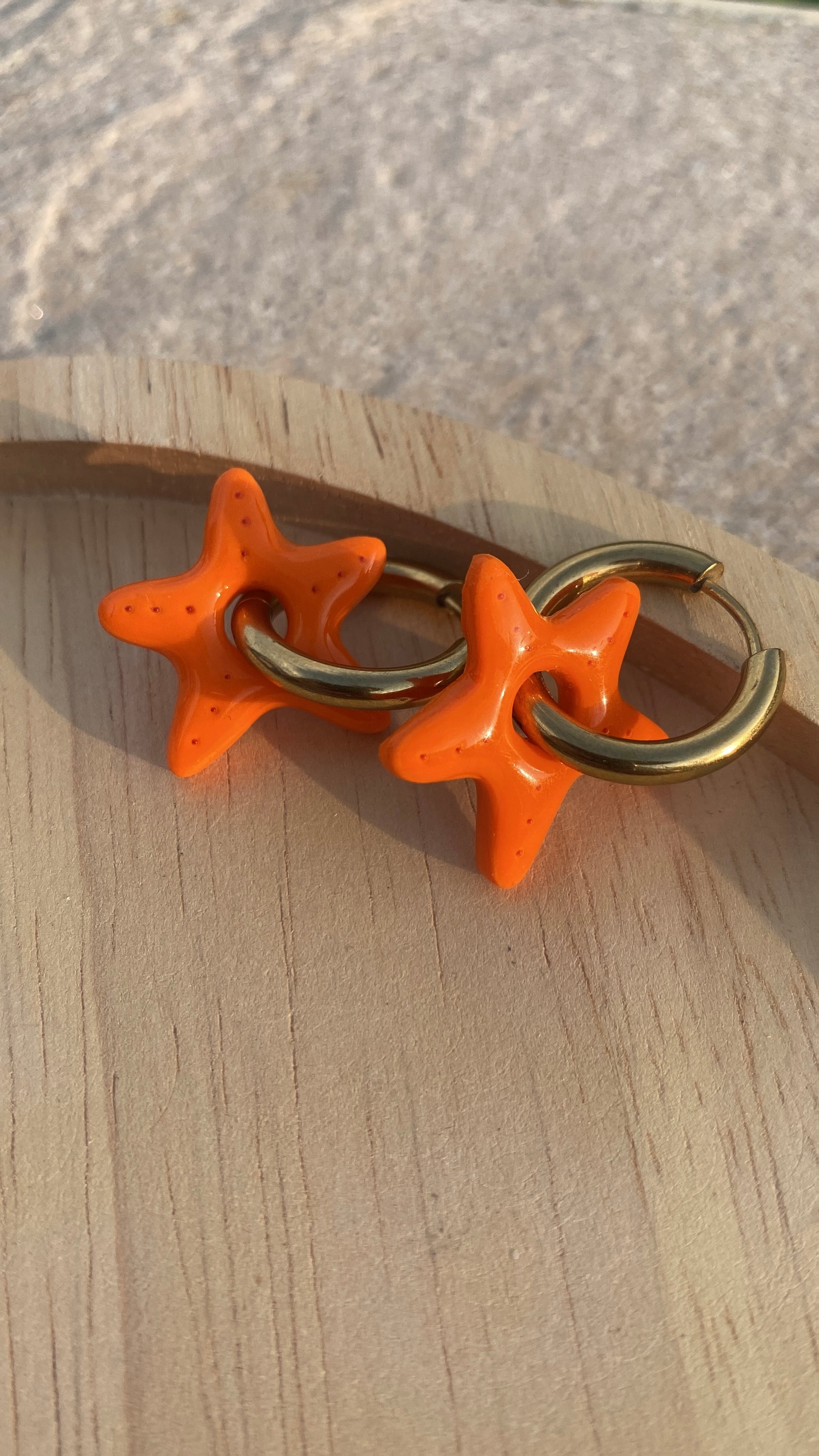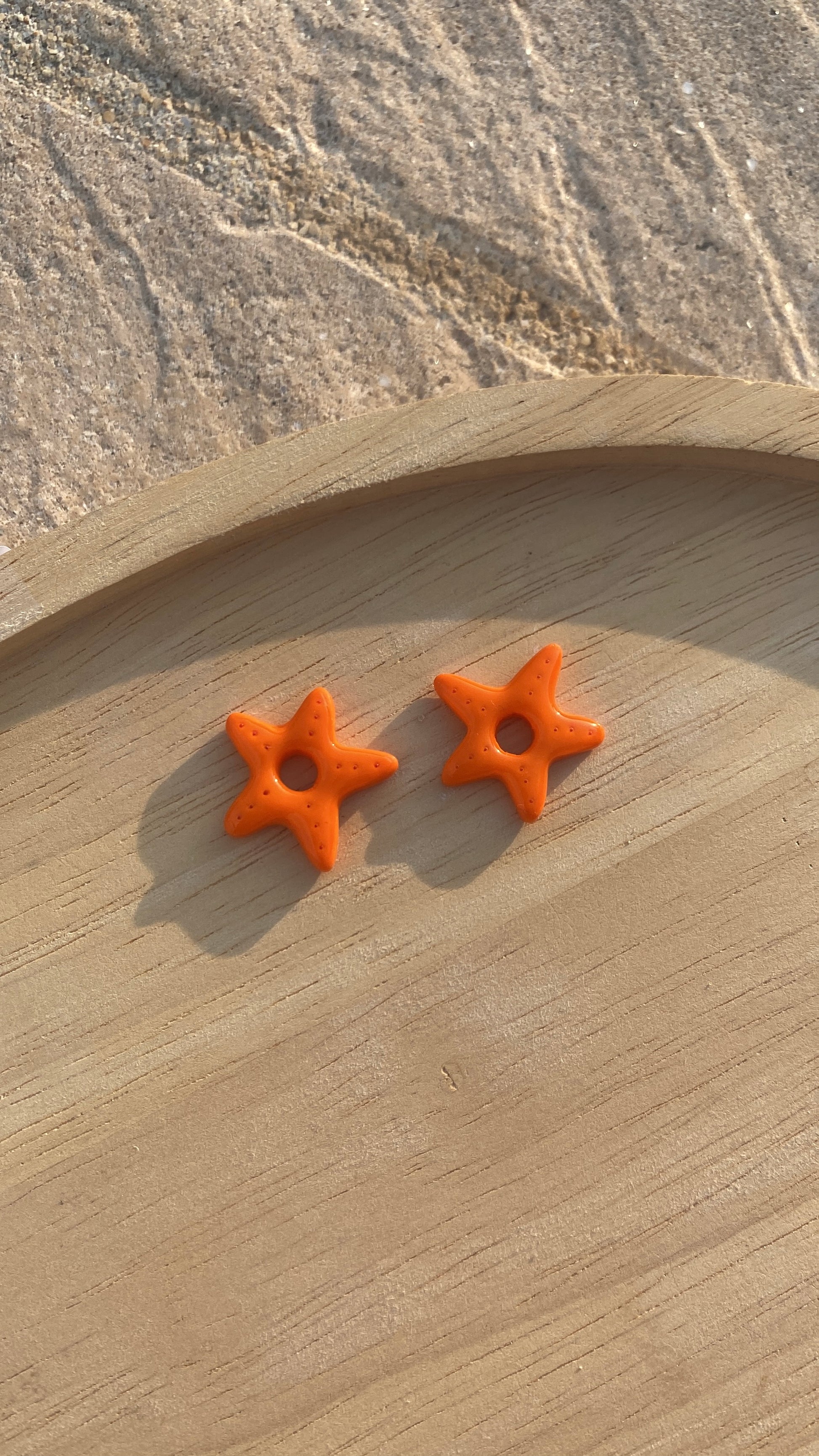 Pampilles étoiles de mer, oranges. Faites à la main, en pâte polymère et protégées par de la résine.