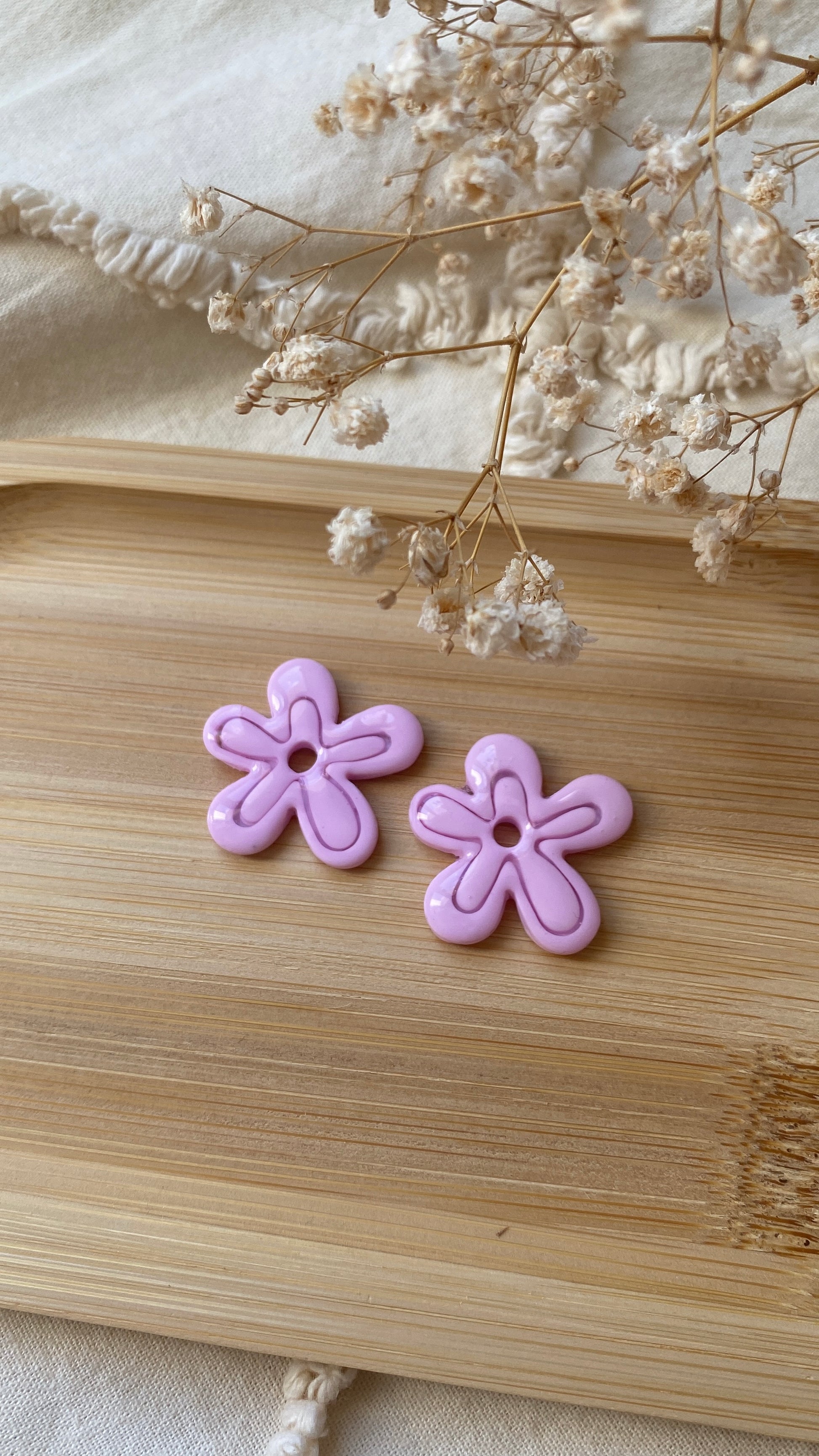 Paire de Pampilles fleurs roses interchangeables réalisée à la main en pâte polymère et protégée par de la résine.