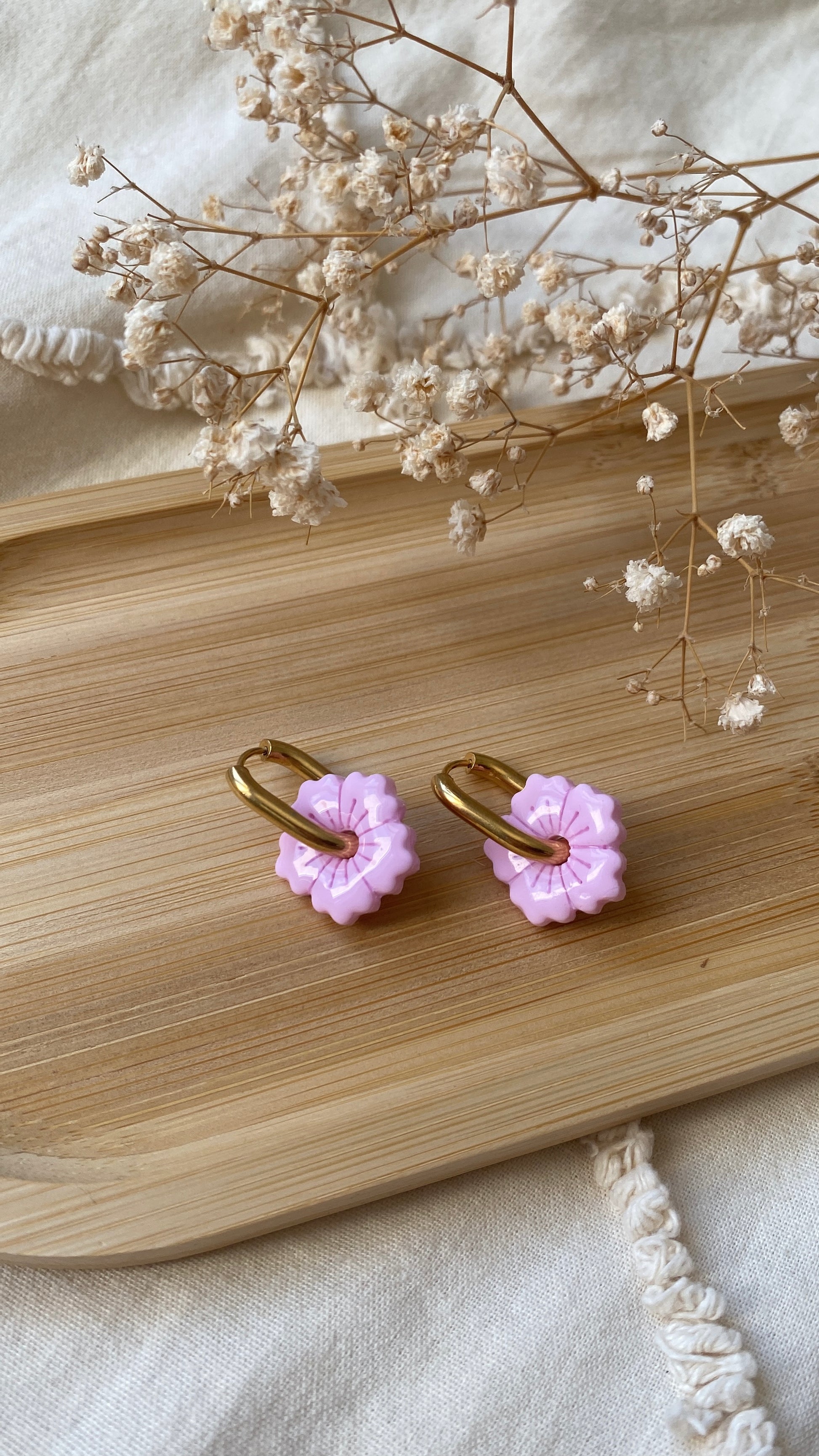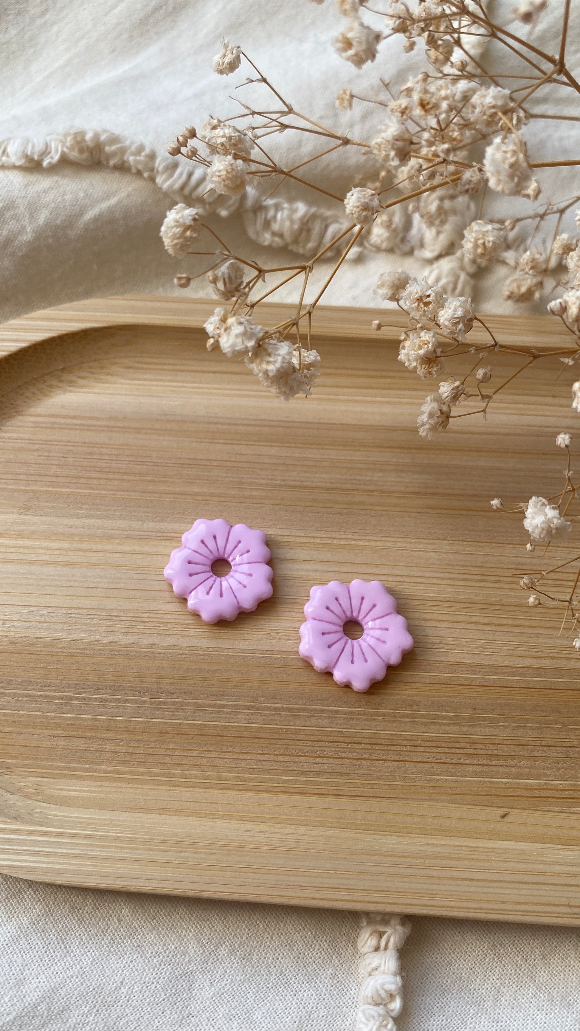 Paire de Pampilles fleurs roses, pour boucles d’oreilles interchangeables. RĂ©alisĂ©es Ă la main, en pâte polymère et protĂ©gĂ©es par de la rĂ©sine.Â