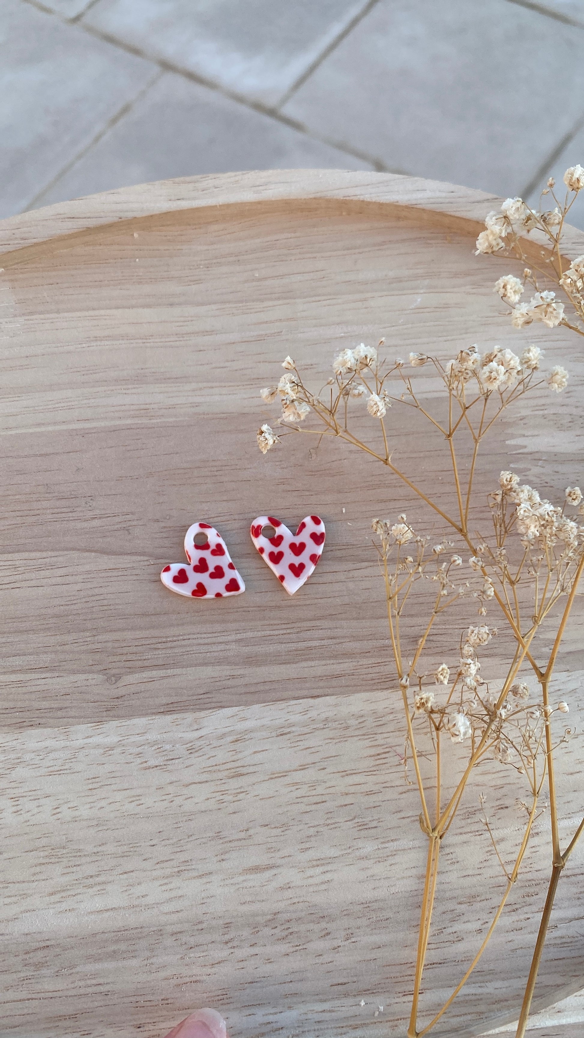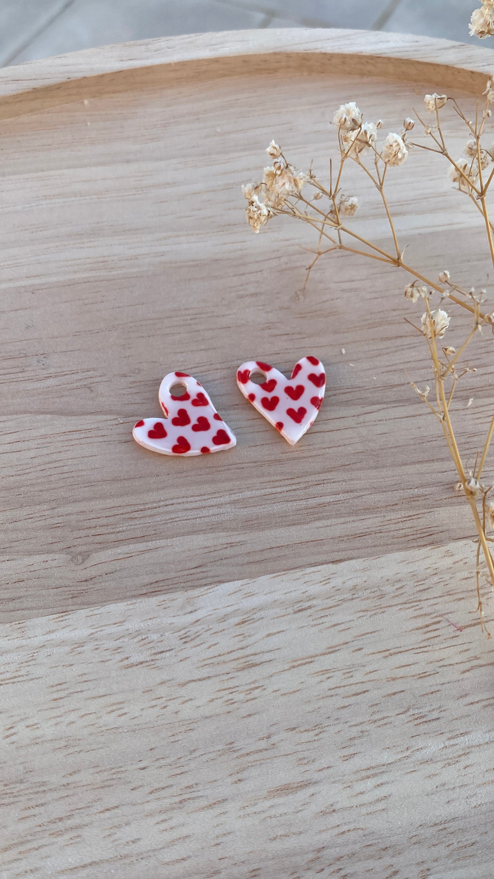 Paire de pampilles cœurs petits coeurs ,rouges, pour boucles d'oreilles interchangeables. Réalisée à la main, en pâte polymère et protégée par de la résine.