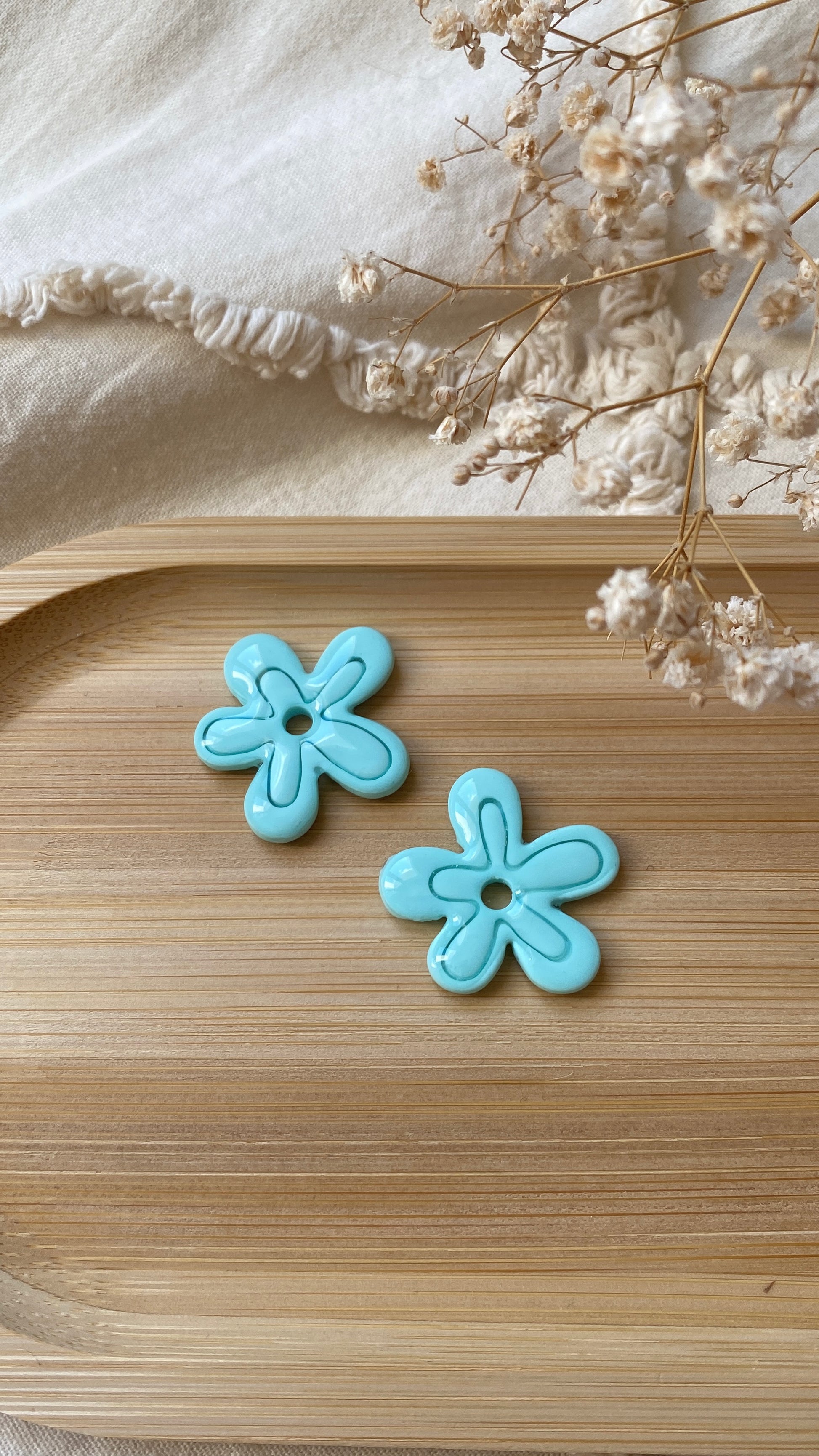 Paire de Pampilles fleurs bleues interchangeables réalisée à la main en pâte polymère et protégée par de la résine.