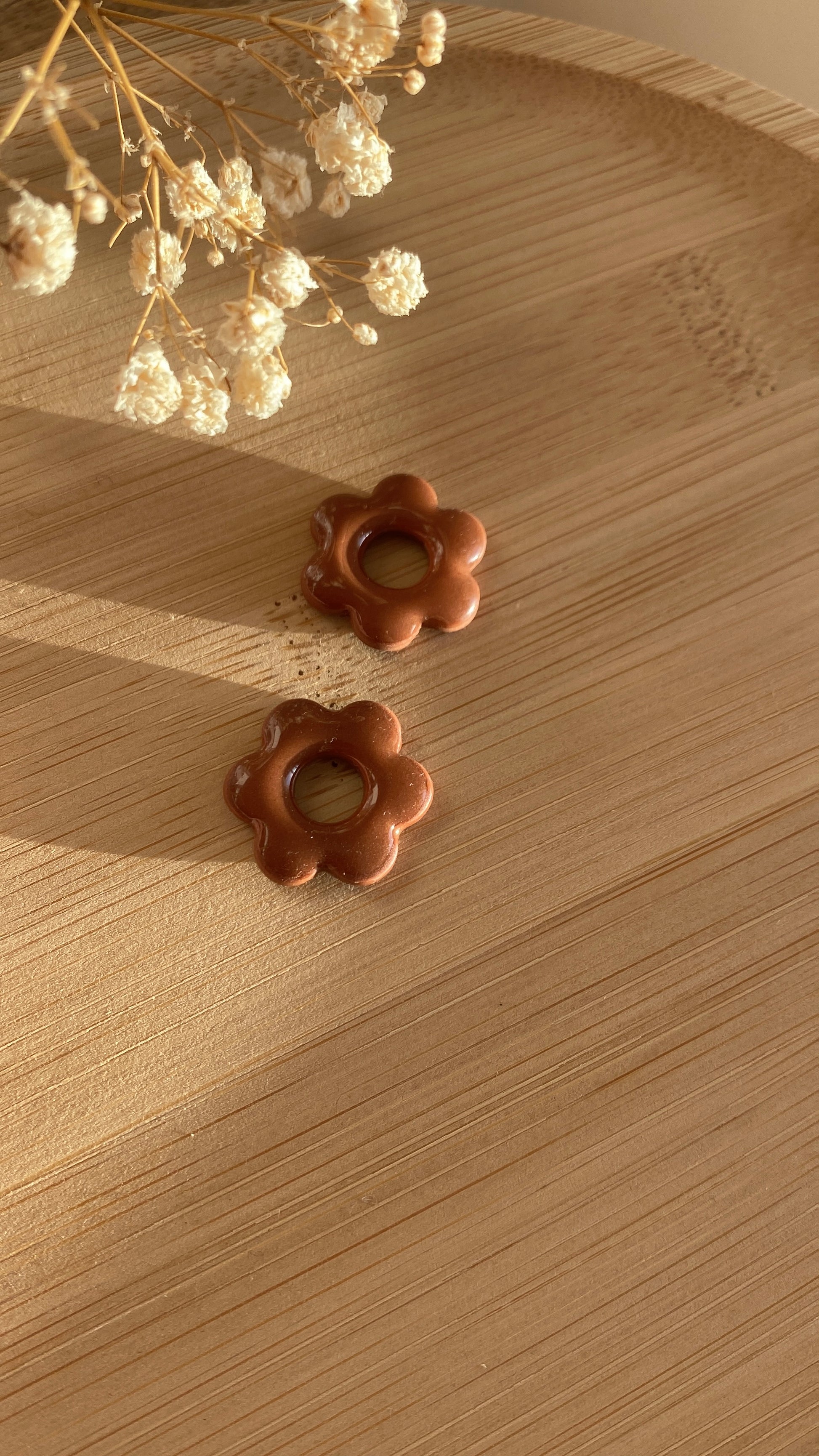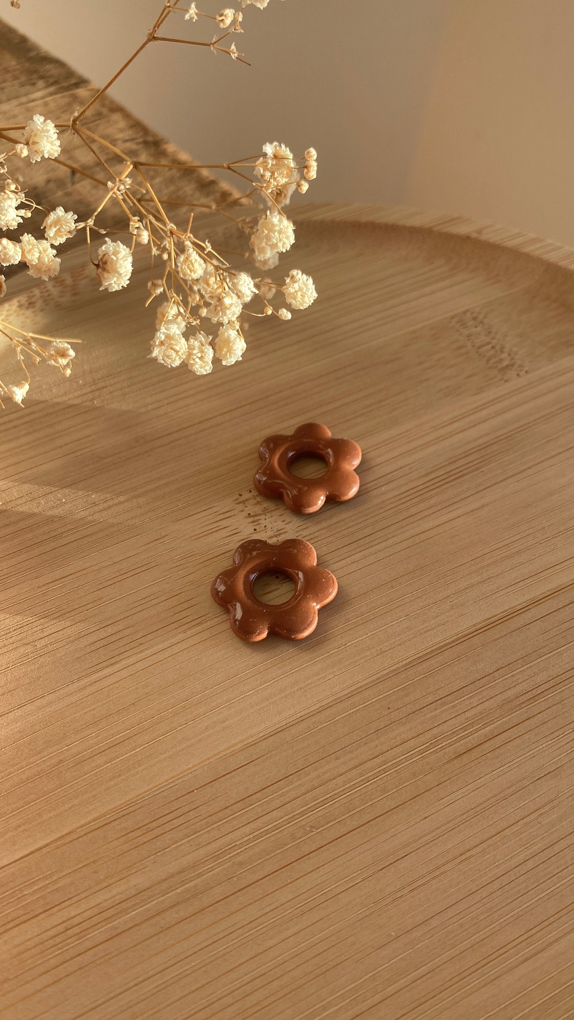 Paire de pampilles fleurs marrons, pour boucles d'oreilles interchangeables. Réalisée à la main en pâte polymère et protégée par de la résine.