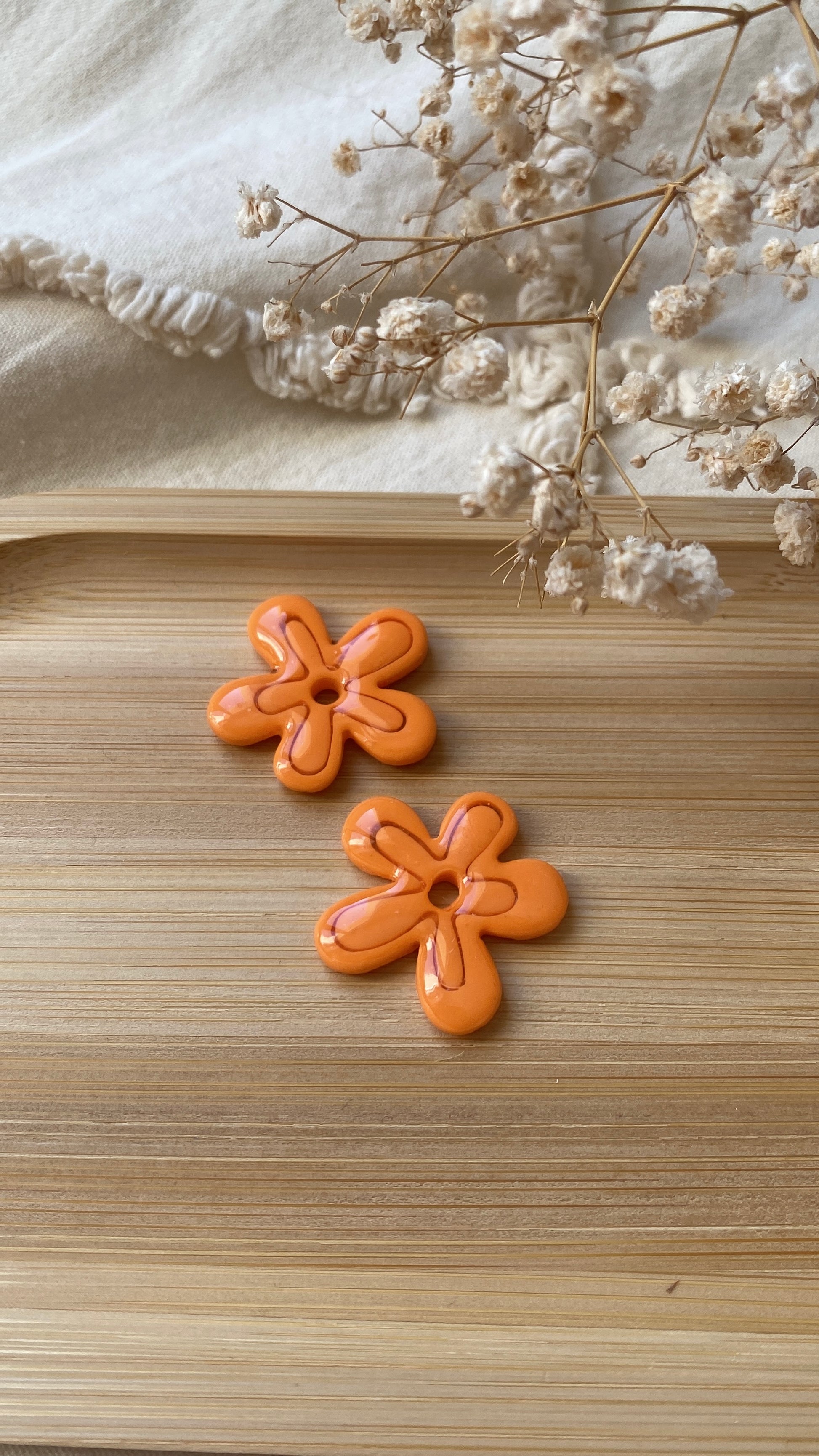 Paire de Pampilles fleurs oranges interchangeables réalisée à la main en pâte polymère et protégée par de la résine.