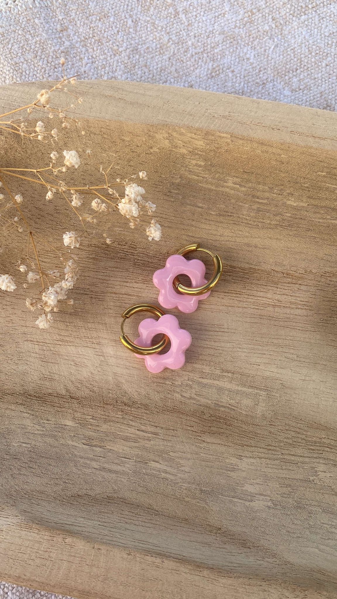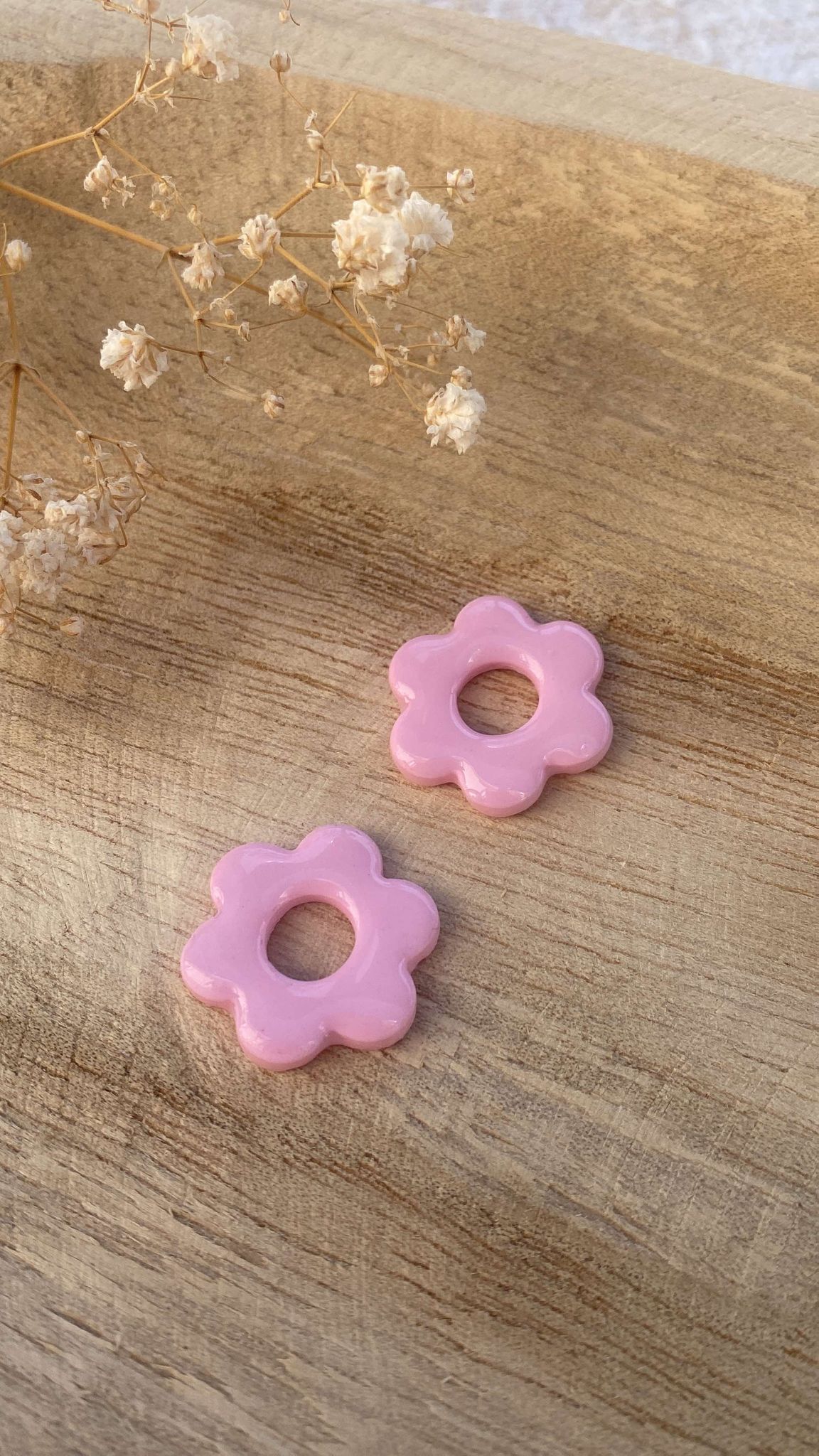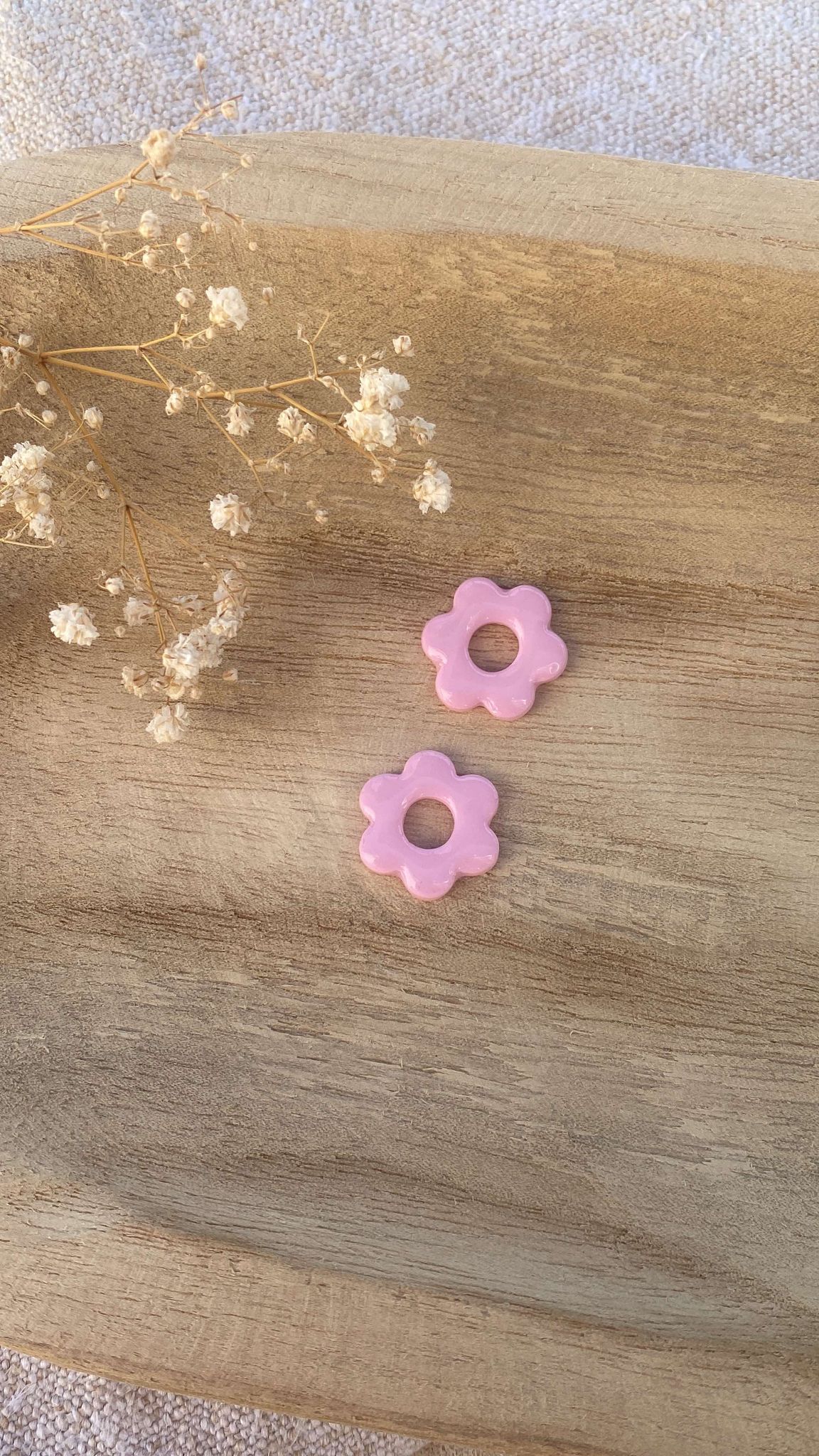 Paire de pampilles fleurs roses pâles, pour boucles d'oreilles interchangeables. Réalisée à la main en pâte polymère et protégée par de la résine.