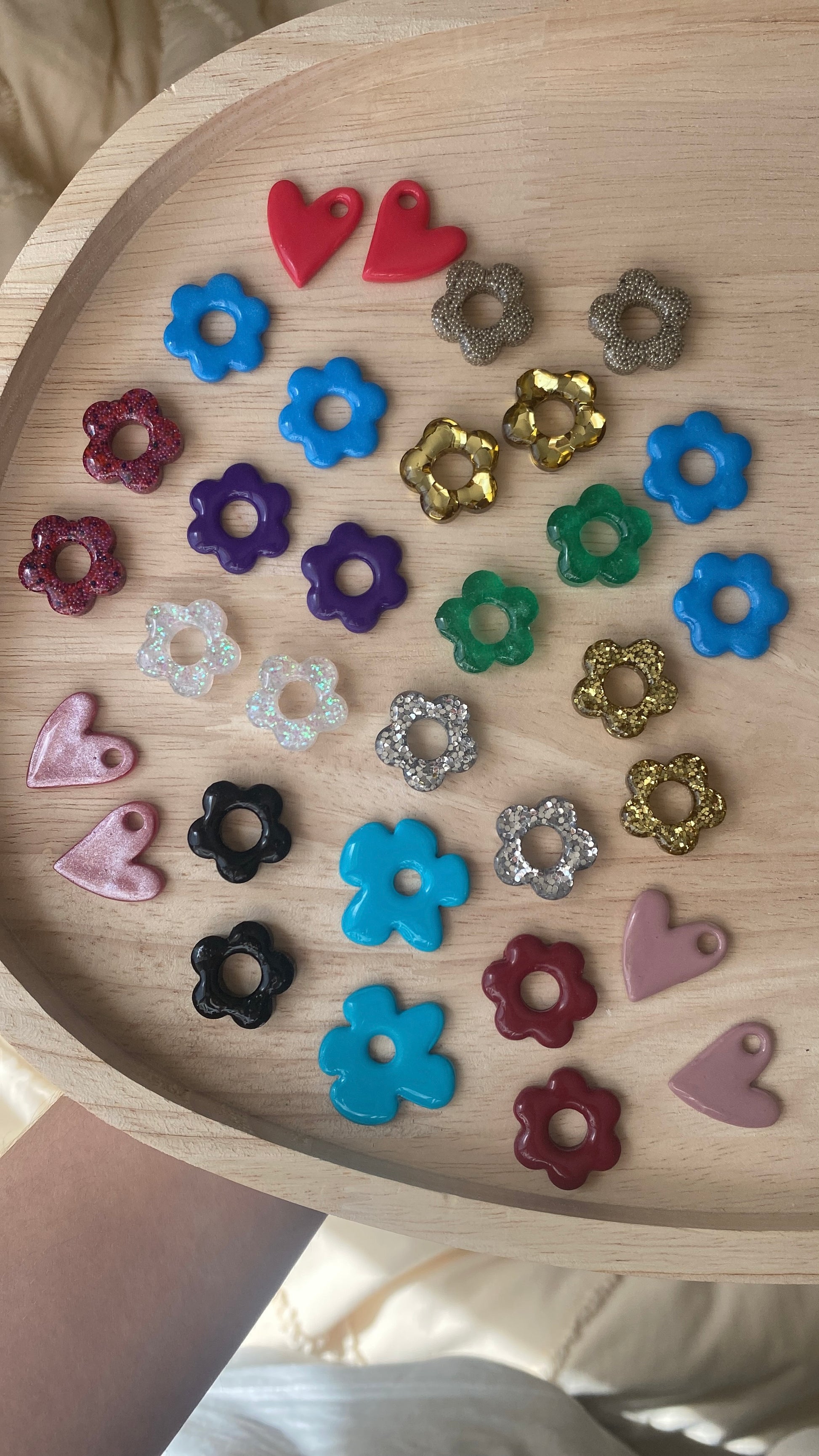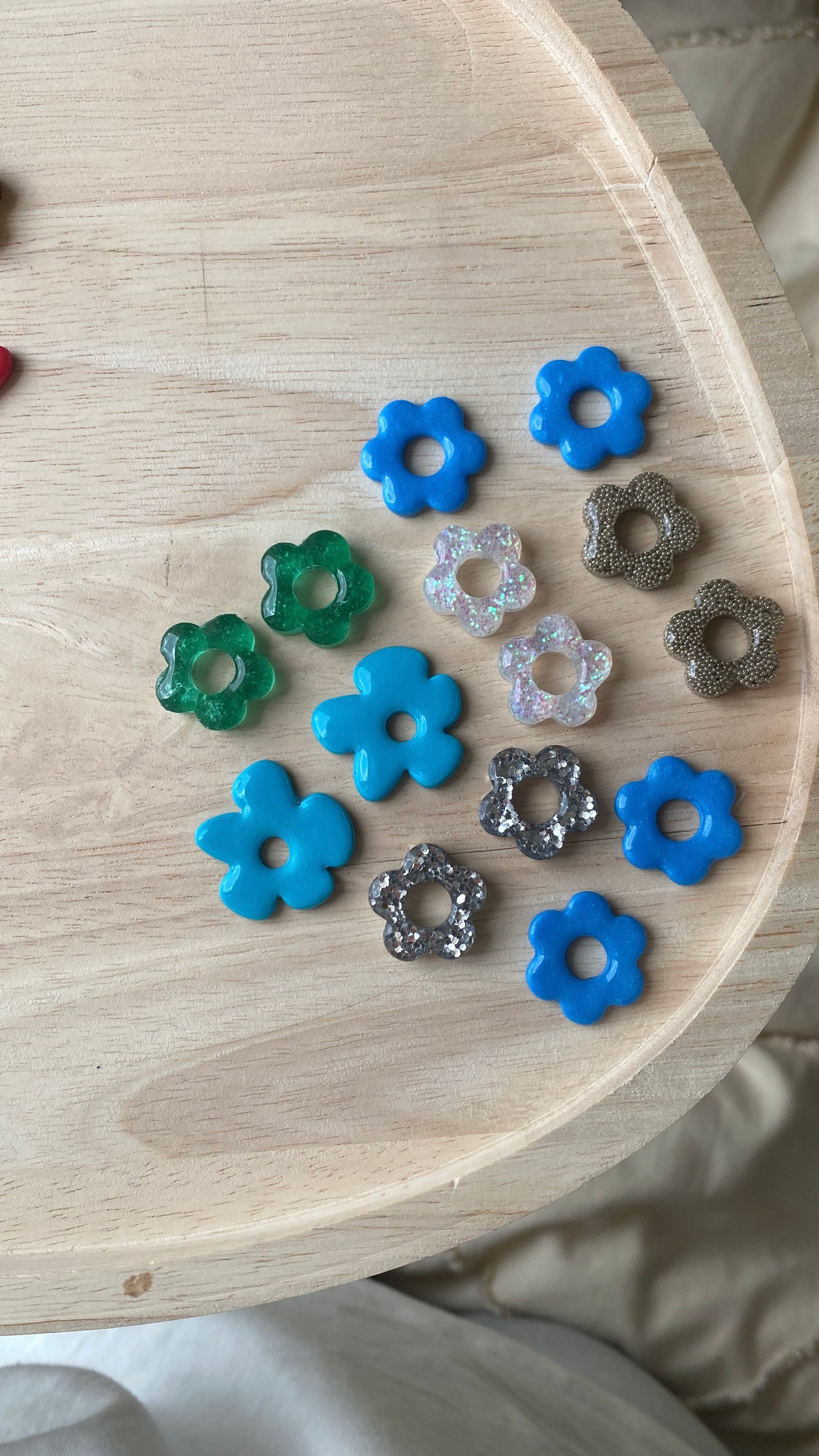 Chaque pochette contient une paire de pampilles (fleurs interchangeables), réalisées en pâte polymère & résine.