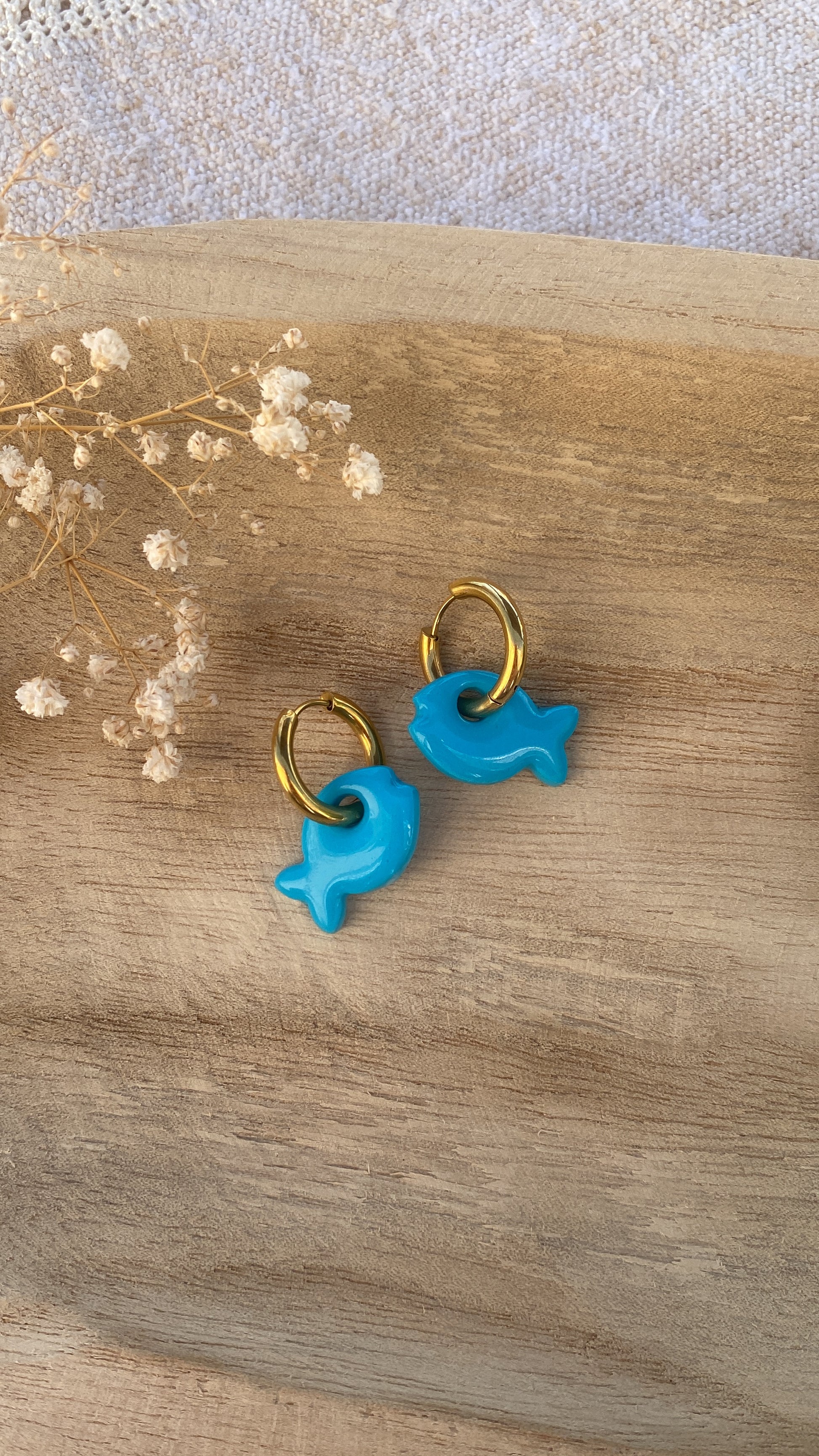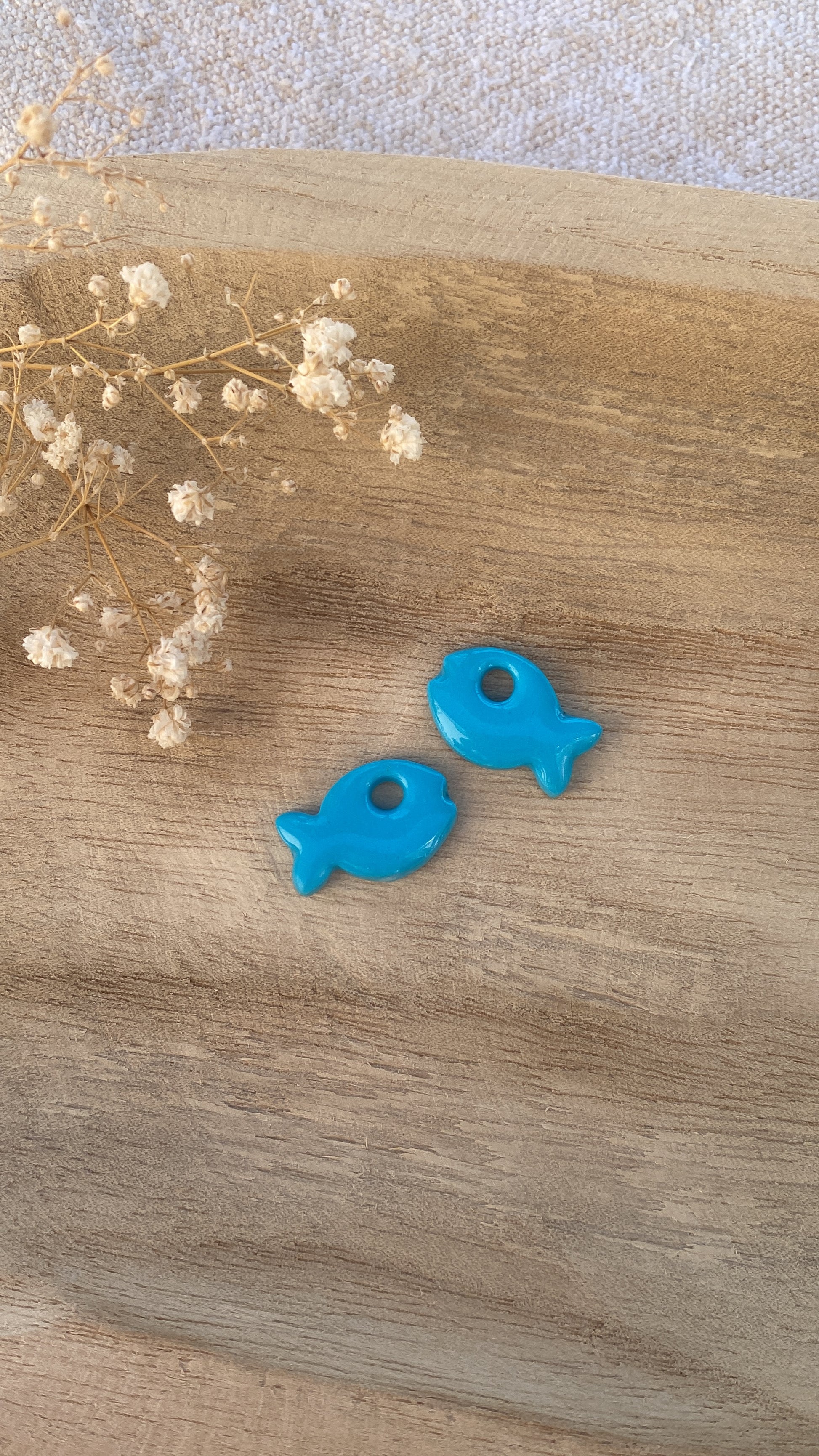 Paire de pampilles poissons bleus, pour boucles d'oreilles interchangeables. Réalisée à la main, et protégée avec de la résine.